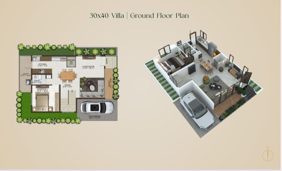 These villas are designed with elegance and comfort in mind, allowing residents to experience the perfect blend of modern living and nature\'s beauty. The 30 x 40 West Facing Villa provides an unmatched view of the magnificent sunset that radiates throughout the villa. The expansive windows and well-crafted architecture of these villas allow natural light to filter in, creating a peaceful ambiance that instills a sense of serenity.